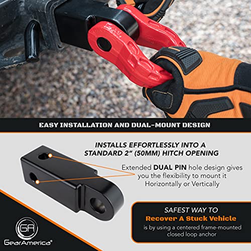 - SAFER TOWING AND RECOVERY - Don’t risk your life by connecting your Recovery Rope or Tow Strap to a ball hitch which can snap and become a deadly projectile. Use GearAmerica's Shackle Hitch Receiver as the Safer Anchor Point on your 4x4, Truck, or SUV to handle any Towing or Off-Road Recovery jobs.
