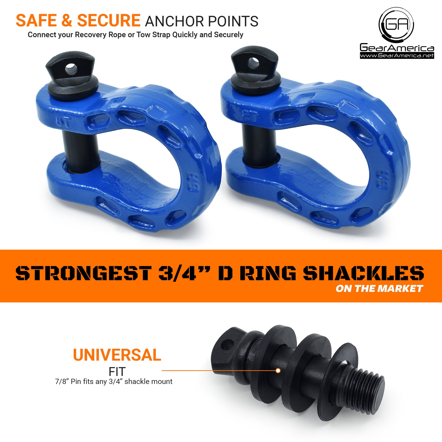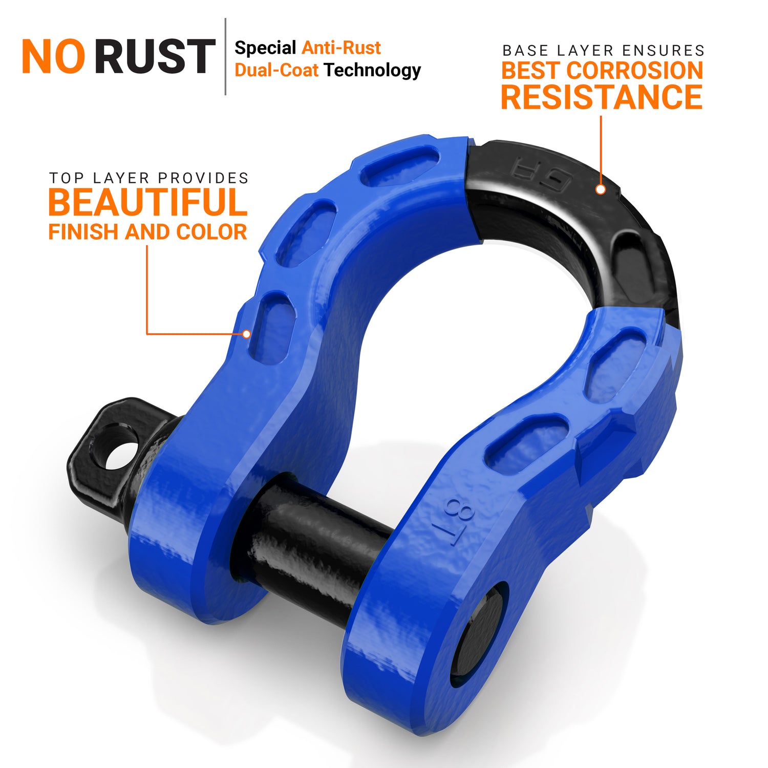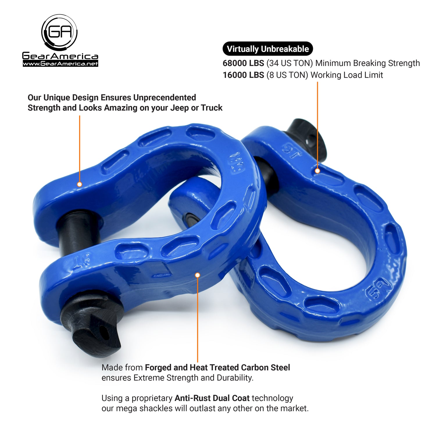 Mega Shackles ® - Blue (2PK) | Forged Carbon Steel | 68,000 lbs MBS (16,000 lbs WLL) | Off-Road Recovery Anchor Points