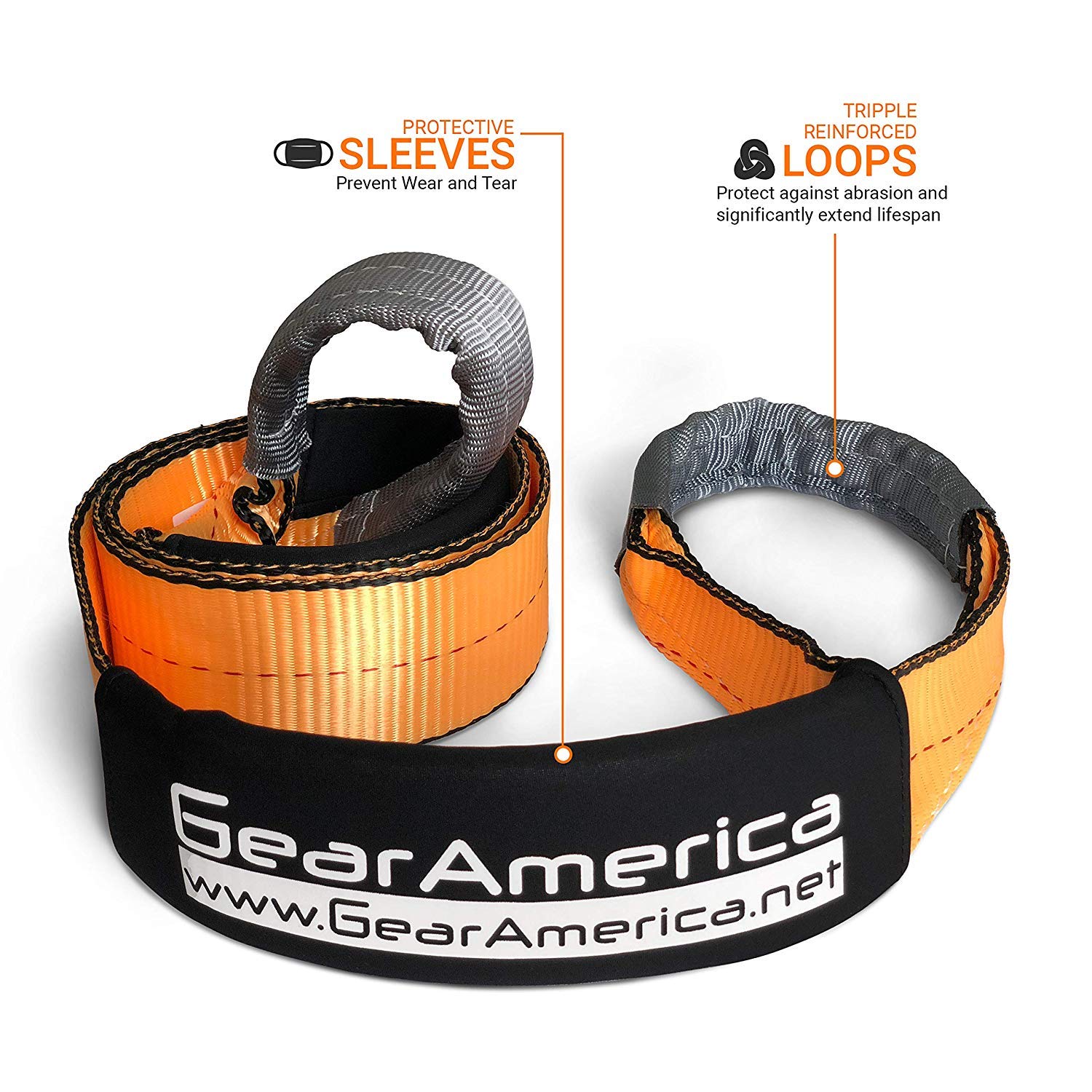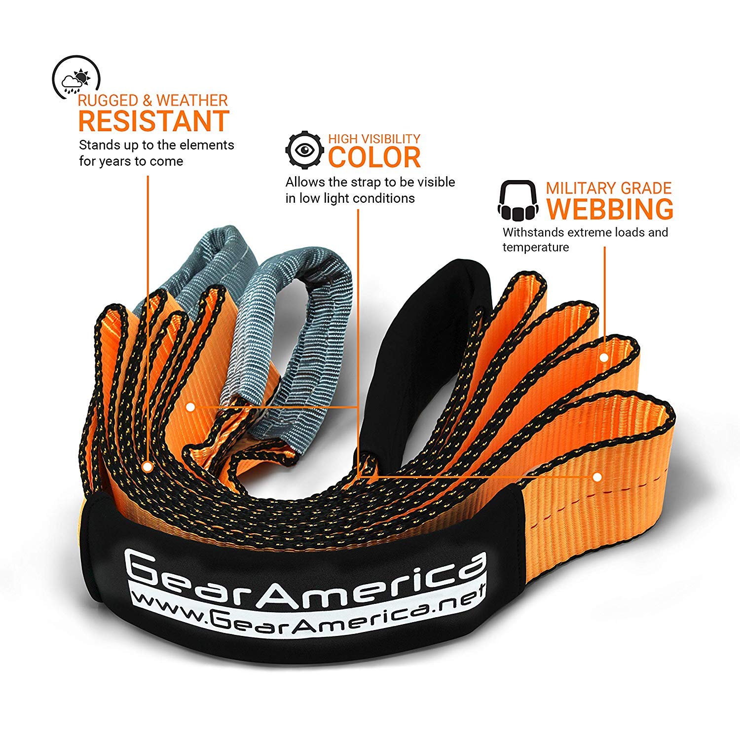 - BE PREPARED FOR ANY OFF-ROAD EMERGENCY with the GearAmerica heavy duty recovery strap, which is specially designed to help you tow your vehicle and protect trees at the same time. As a result, you can recover your car 100% hassle-free.