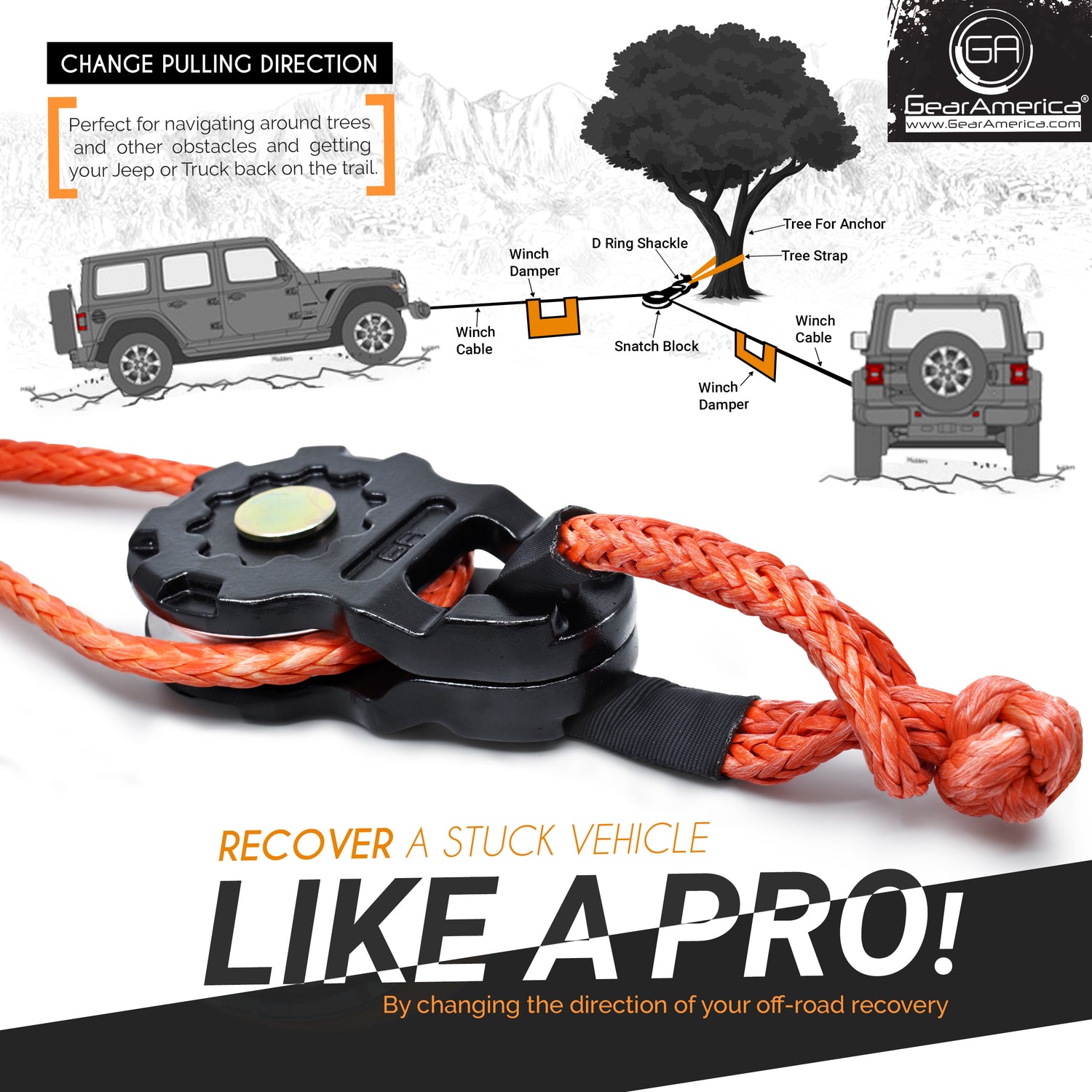 OFF-ROAD LIKE A PRO! - Effortlessly Recover any Stuck Vehicle by Changing the Direction of your pull. Perfect for navigating around trees and other obstacles to get your 4x4, Truck, or SUV back on the trail. GearAmerica Snatch Blocks will make even the most challenging and complex recoveries seem like a piece of cake for you.