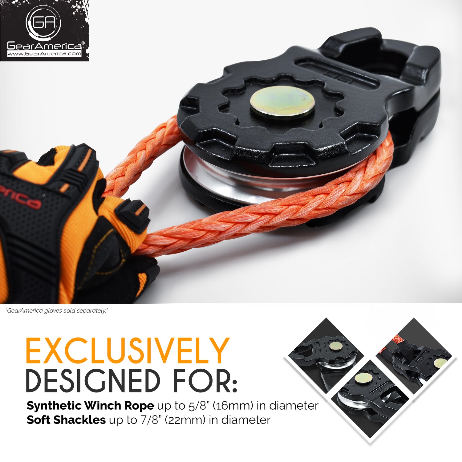 GearAmerica Ultra Snatch Block Aluminum Pulley | use with Synthetic Winch Line up to 5/8” (16mm) & Soft Shackles | 20T Strength for Winches up to 20,000 LBS | Change Recovery Direction, Double or Triple Winch Mechanical Advantage