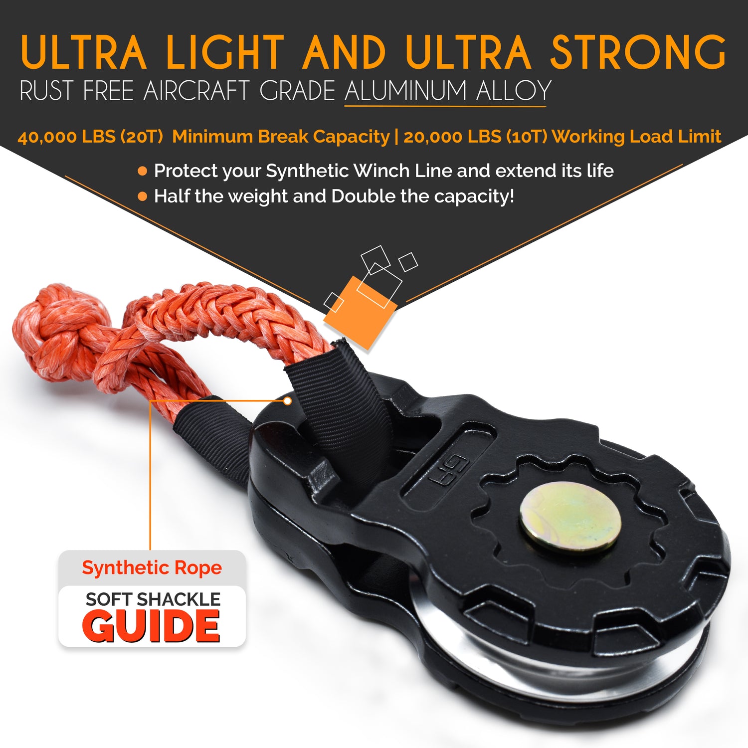- PROTECT YOUR SYNTHETIC WINCH LINE AND EXTEND ITS LIFE! - Specially designed for use with Synthetic Winch Rope up to 5/8” (16mm) and Soft Shackles. While other brands of winch pulleys may cause your synthetic line or soft shackles to fray and deteriorate, our Aluminum ULTRA Snatch Block will protect your synthetic recovery gear and the built-in greasable zerk fitting will ensure smooth operation and a long, corrosion free lifespan. Not Recommended for Steel Cable or D-Ring Shackles.