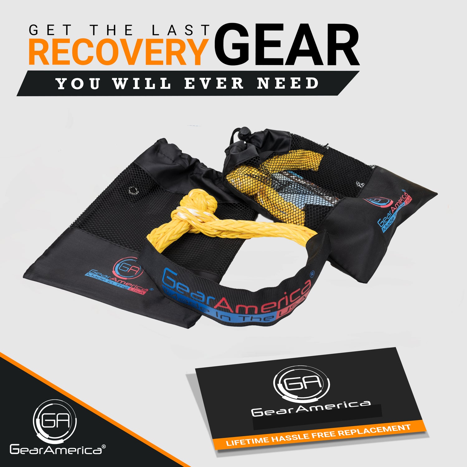 GearAmerica 5/16" Synthetic Soft Shackles (2 Pack) Yellow | 17,000 lbs Breaking Strength - Made in The USA | Stronger & Safer than Steel D Rings | For Off-Road Recovery & Towing | Protective Sleeve & Storage Bag Included